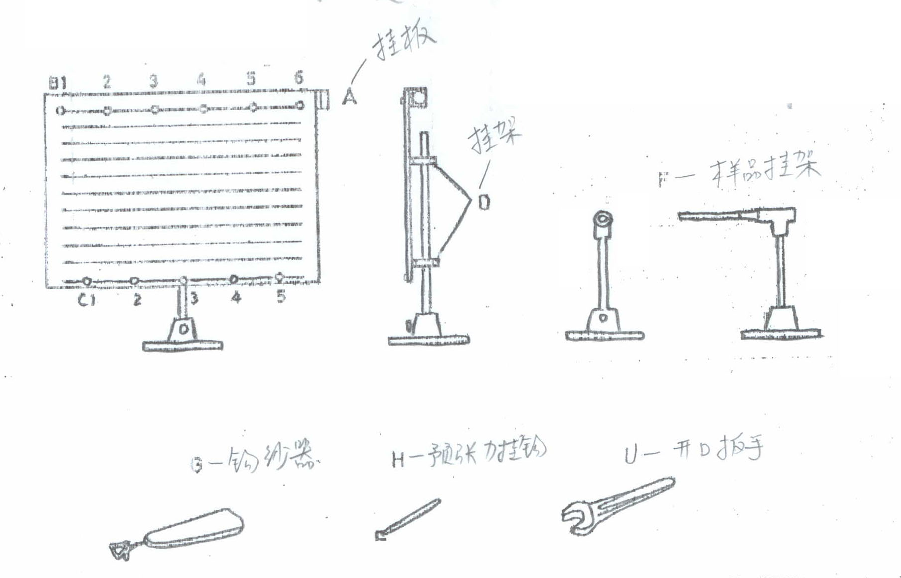 分別將5個預張力掛鉤掛在C1/C2/…C5,並將絲樣鉤出定位銷,此時絲樣會因自身扭矩而旋轉,待穩定後不轉時,以人工讀出刻度值。 |
